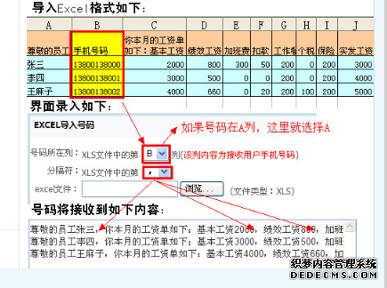 這里介紹是EXECL方式導入號碼的方法,如圖所示