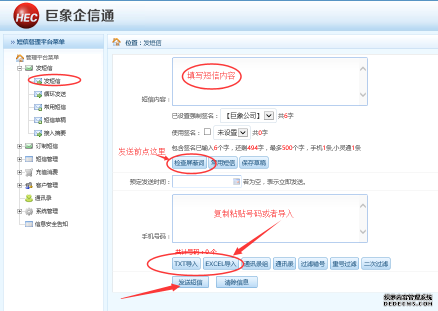 一、短信群發(fā)簡易操作示圖說明