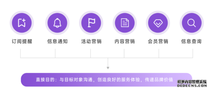 在獲取用戶(hù)短信訂閱的許可后,一方面品牌可以主動(dòng)向用戶(hù)發(fā)送訂閱通知、活動(dòng)營(yíng)銷(xiāo)、內(nèi)容營(yíng)銷(xiāo)、用戶(hù)激活等類(lèi)型的營(yíng)銷(xiāo)短信,實(shí)現(xiàn)與用戶(hù)的溝通、創(chuàng)造良好的服務(wù)體驗(yàn),傳遞品牌價(jià)值。