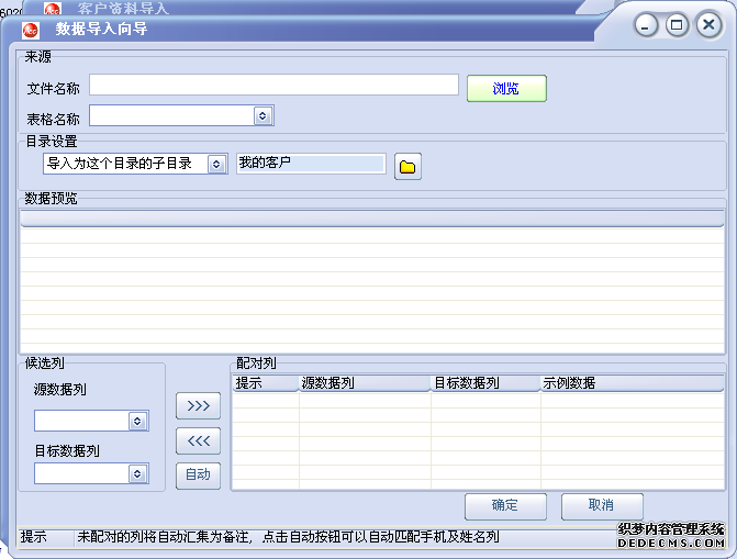 一個配對:當從源列中選擇一字段和目標列中選擇一字段后就構成一個配對,意思就是將源中的字段內容導入時導到目標字段中去。